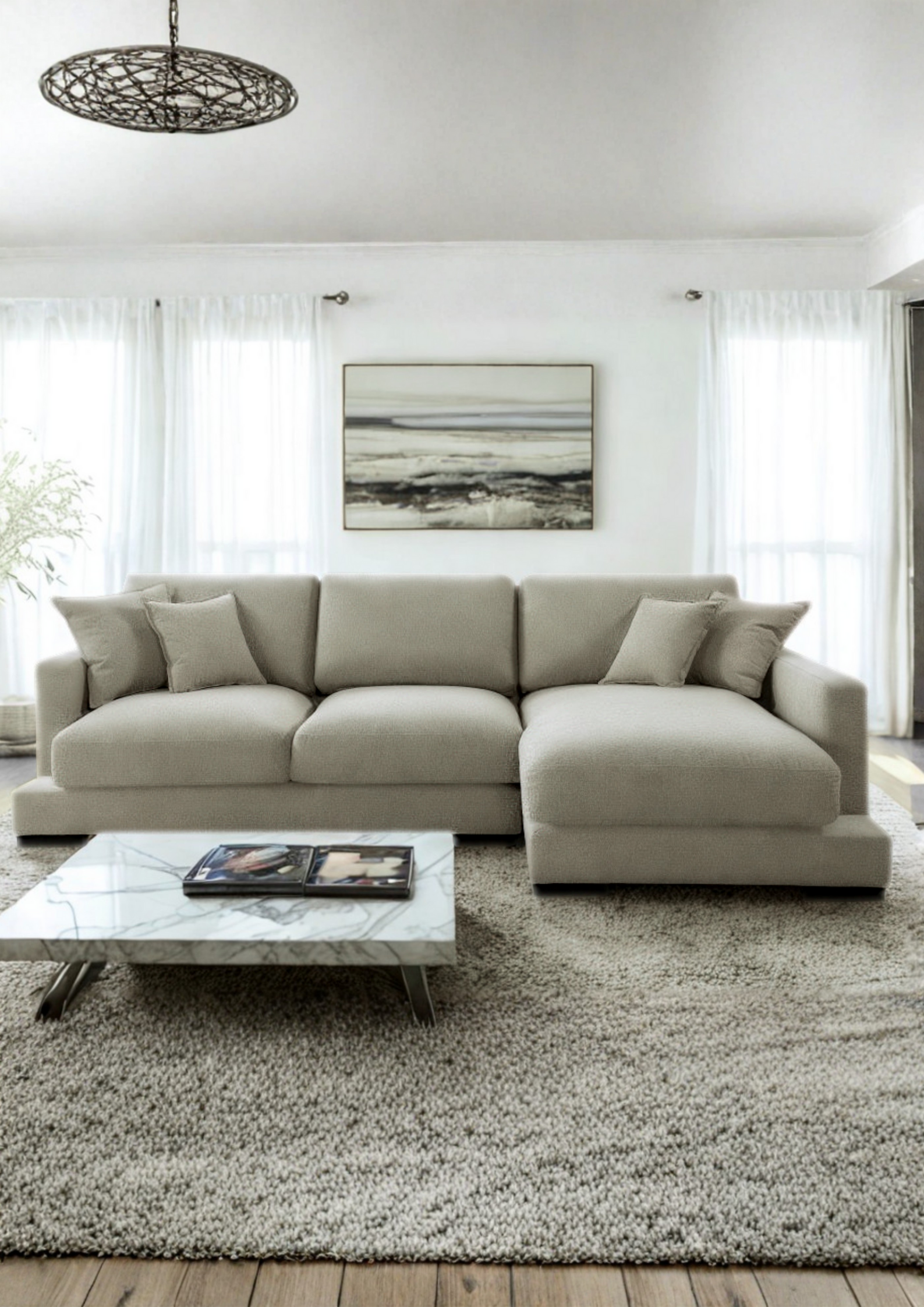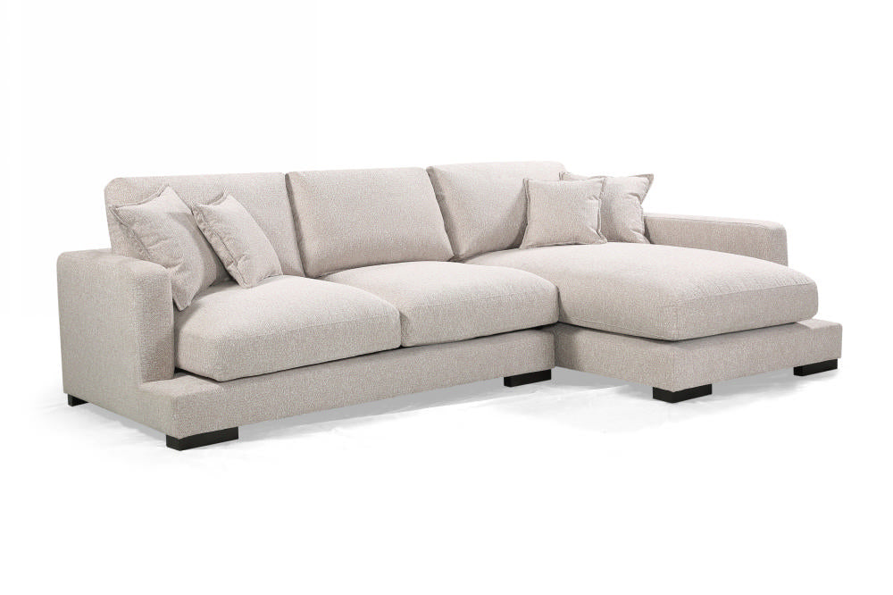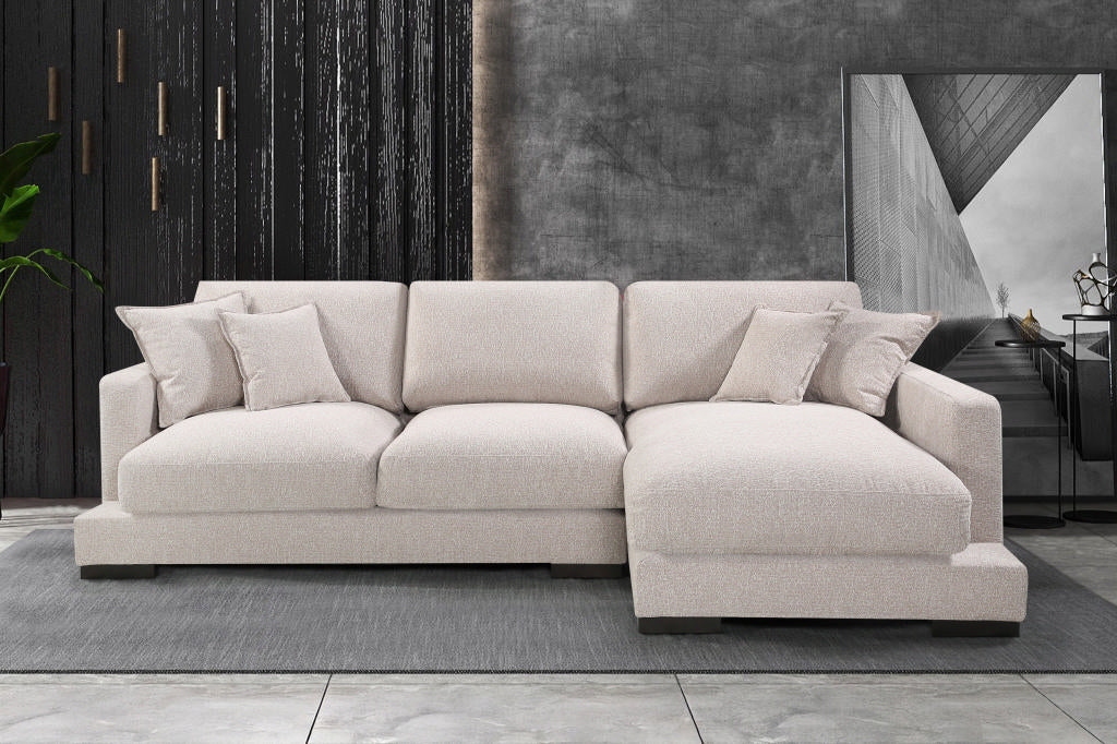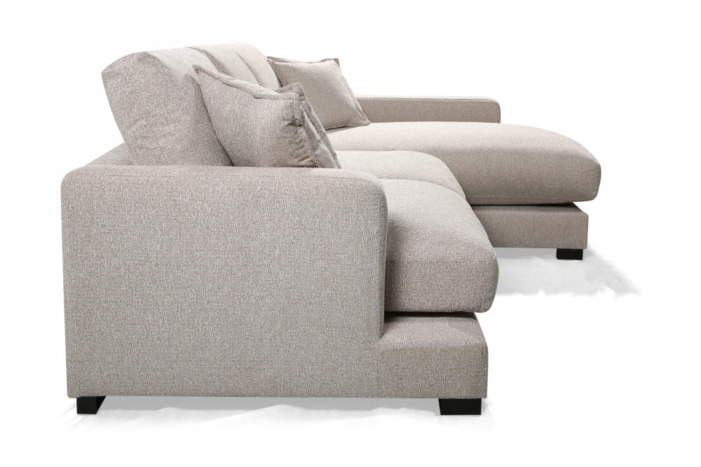 The City Chaise Lounge in Bark Light offers ultimate comfort and style for modern living spaces. Featuring plush feather and foam seating cushions, it provides unparalleled relaxation, while its sleek, contemporary design makes it a perfect fit for any apartment. Complete with throw cushions and available in both LHF and RHF configurations, the City Chaise Lounge combines functionality with chic design.
