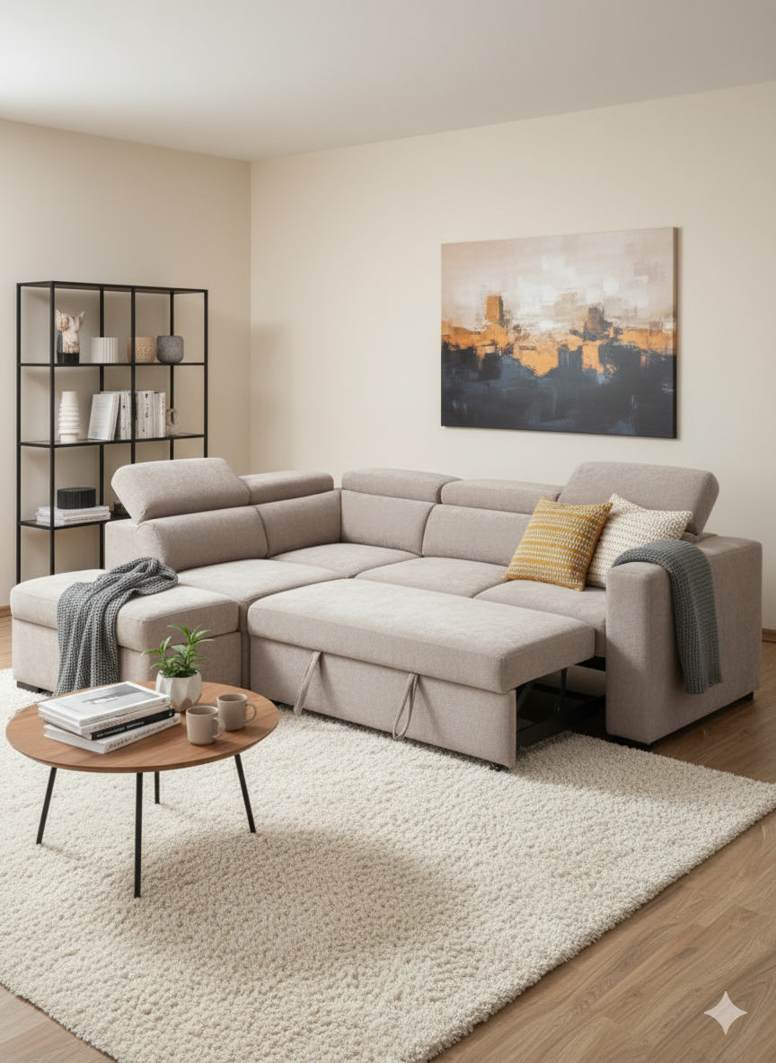 The Evo Sofa Sleeper offers ultimate comfort and convenience. Crafted with luxurious fabric, it features adjustable headrests for personalized relaxation, and hidden storage in the ottoman. Plus, with a pop-out sofa bed, it's perfect for accommodating guests. Experience the perfect blend of style and functionality with the Evo Sofa Sleeper Large.