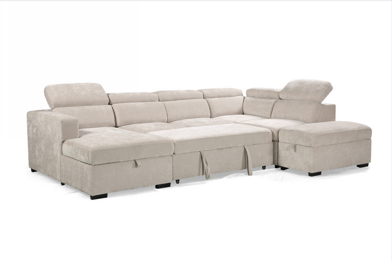 The Evo Sofa Sleeper Large offers ultimate comfort and convenience. Crafted with luxurious fabric, it features adjustable headrests for personalized relaxation, and hidden storage in the ottoman and chaise. Plus, with a pop-out sofa bed, it's perfect for accommodating guests. Experience the perfect blend of style and functionality with the Evo Sofa Sleeper Large.