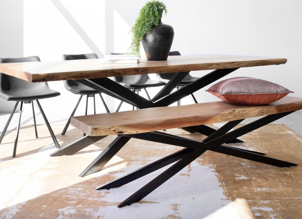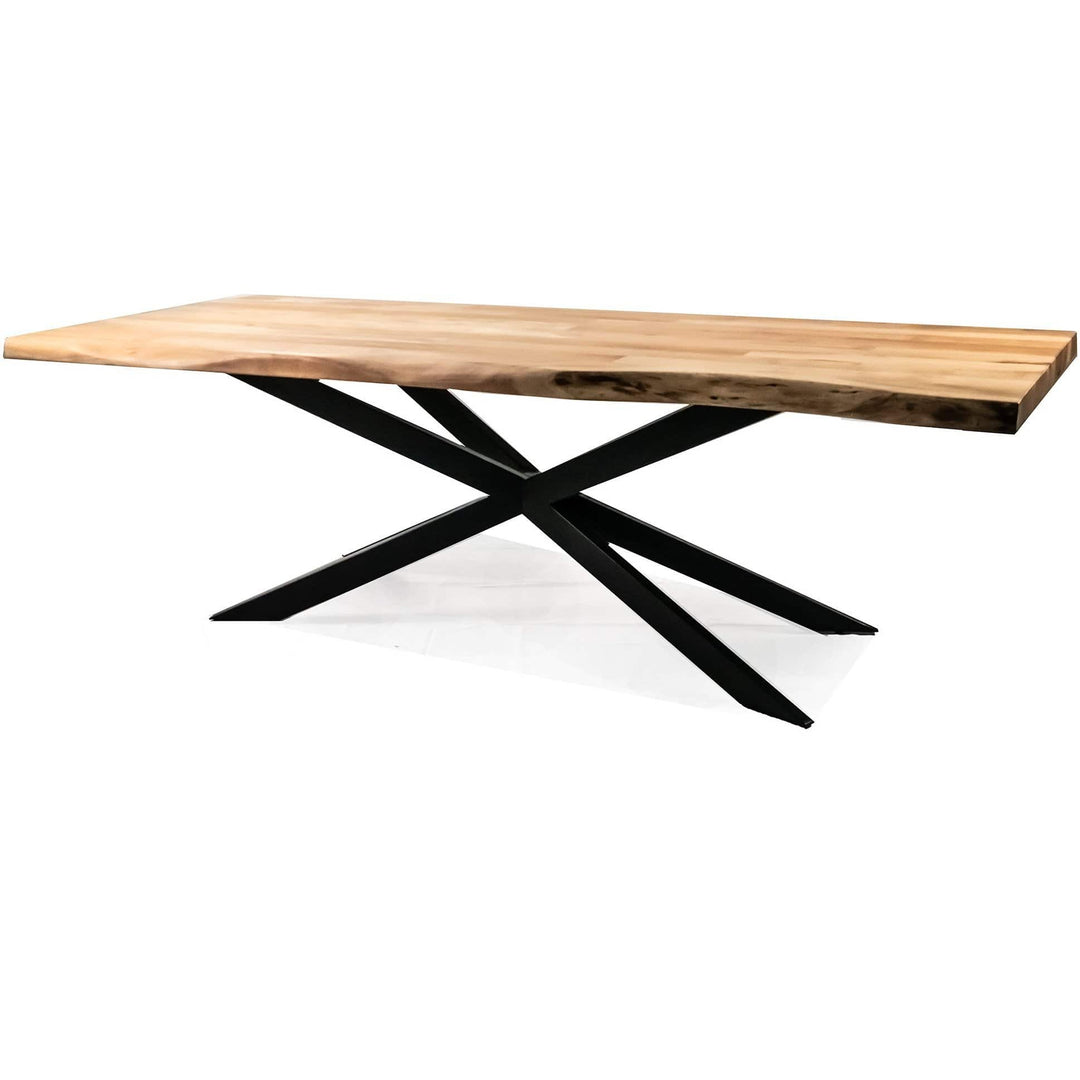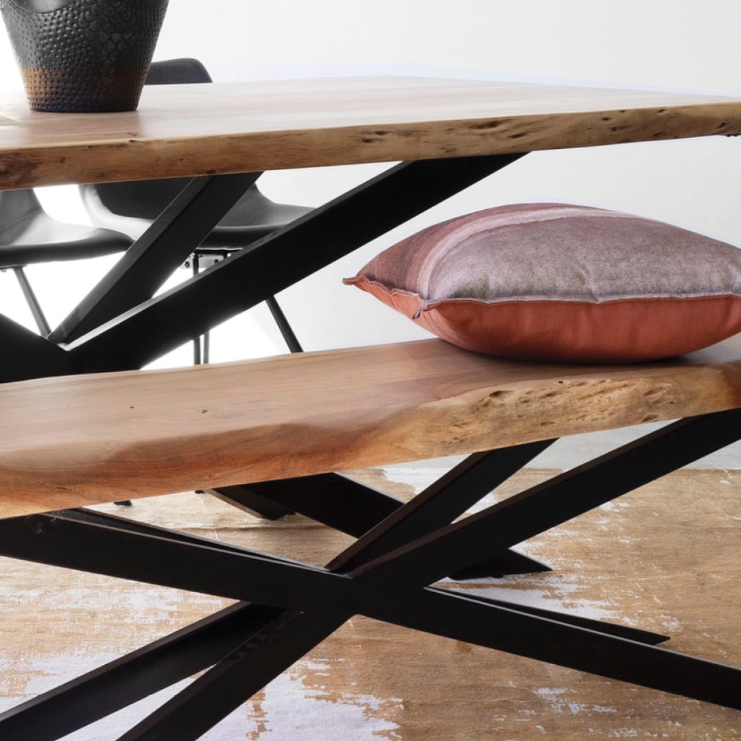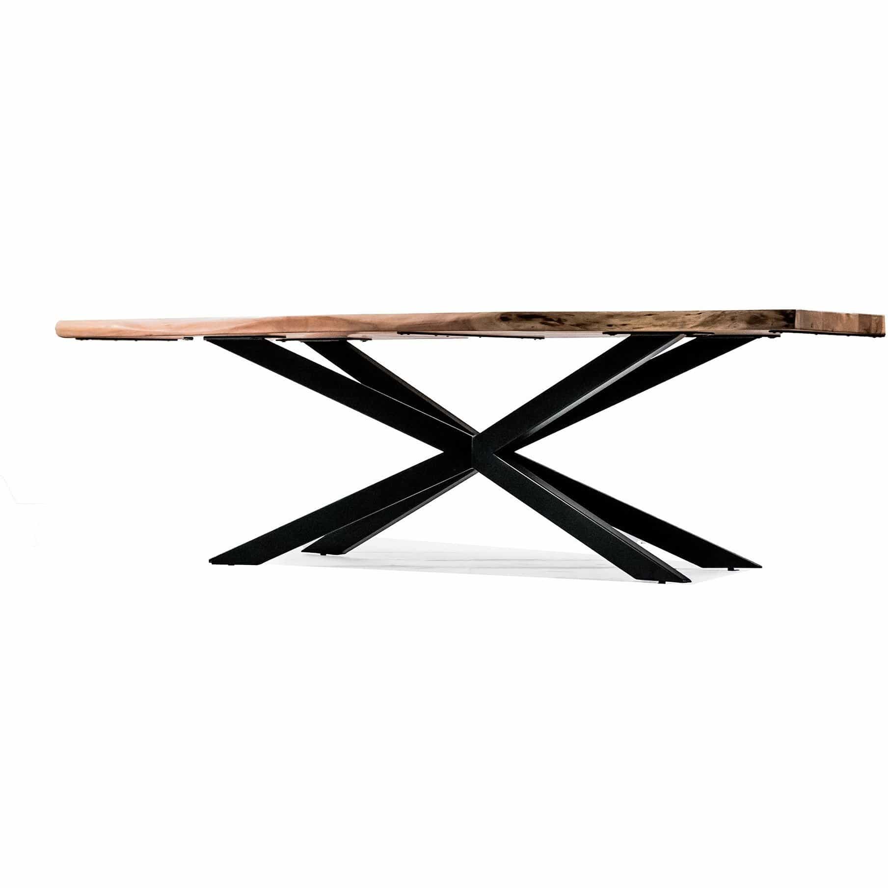 The Forest Dining Table is a modern and elegant addition to any dining room. Crafted from solid Acacia wood, it features a live edge design and black metal cross legs. Available in two sizes, 2400mm and 1900mm, this table is the perfect blend of natural and industrial elements.